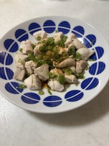 - 長ネギをお好みでのせる。噛みごたえが気になる人は輪切り、食感を楽しみたい人は千切りで。